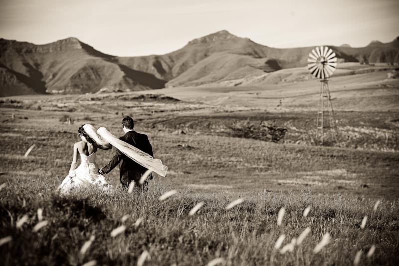 For the last 4 years God has blessed us with the privilege to do weddings in the picturesque Eastern Free State, where the famous sandstone formations of the Maluti Mountains fill me over and over with awe and wonder!  …and so it also does for Charl & Alécha, so much so, that they had to get married here!  Apart from the beauty of the Clarens-Fouriesburg district that are close to heart for them, they also value their family & friends tremendously.  And I found this truly something that stood out for me about their wedding; a vibrant student-like spirit was evident and their friends had lots of stories and vivid memories of their free varsity years.  We featured a prewedding video clip of them at the reception with such a great response from all the family and friends, which just proved the active interest and involvement of them in their lives.